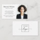 Modern, elegant, white business cards with custom logo and photo inside an half arch. Fonts, font colours and background colours can be changed with the design tool.