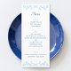Add a touch of elegance to your special day with our Elegant Floral Bow Wedding Menu Card. This beautifully designed menu card features delicate blue floral accents and charming bow illustrations, perfect for a classic and sophisticated wedding reception. The timeless blue and white colour palette complements any wedding theme, making it a versatile choice for your big day. Personalise it with your menu details to create a stunning keepsake for your guests. Ideal for weddings, bridal showers, and other elegant events. Order now and elevate your wedding decor with this stylish and elegant menu card.
