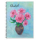 Cute and stylish notebook features pretty and elegant oil illustration of pink peony flowers in a vase on blue texture background. Personalise and Change the name to your own. this hand painted floral notebook will be a perfect personised gift.