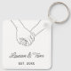 Modern Unique Personalised Hand In Hand Illustrated Valentines Day Script Keychain