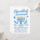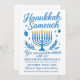 Invite family and friends to celebrate the Festival of Lights with this elegant Hanukkah Sameach dinner invitation. Featuring a lit menorah at the centre, shimmering Jay blue hand-drawn script, and festive dreidel silhouettes on a crisp white background, this design blends modern chic style with timeless tradition. With details for the date, time, location, and RSVP, it’s the perfect way to set the tone for a warm and meaningful Hanukkah gathering.
