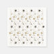 A elegant Hanukkah paper napkin design with stars in gold and black on a white background with gold strands and dots. Coordinating items available.