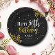 Elegant Happy 50th Birthday Gold Foliage Party Paper Plates. Celebrate a milestone in style with this personalised plates. Featuring a sophisticated black background with luxurious gold foliage, this design adds a touch of class. These plates are perfect for making the guest of honour feel extra special. Make turning 50 unforgettable with this timeless and chic design!