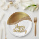 An Elegant Happy Birthday In Gold And White Paper Party Plate
