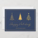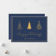 Elegant Happy Holidays Business Blue Card. Featuring modern minimalist Christmas trees. Flit the card to customise the text. Also available as digital download.