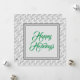 The design features the holiday wish "Happy Holidays" in green script on a framed script pattern of silver and white. An elegant holiday greetings card for family, friends, colleagues, and associates alike.