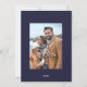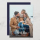 This is an elegant and minimal New Years card featuring a simple photo combined with “Happy New Year” in a beautiful handwritten script font. The back of the card uses an elegant and fresh white and navy blue stripe design.