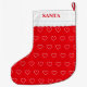Elegant heart pattern on red Christmas stocking. Name can be personalised.