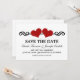 Sweet and whimsical Elegant Hearts Save the Date Announcement featuring a fancy swirl border adorned with a pair of dark red hearts. This modern save the date invitation is the perfect choice for announcing your chic and elegant wedding. Easy to customise, simply add your wedding details in the text fields provided. Click "Customise It" to find additional personalisation options.
