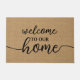 The beautiful taupe burlap-style textile features an elegant 'Welcome to our Home' in simple typography word art. This ornate and charming calligraphy wordart design is perfect for the country cottage farmhouse style enthusiast who loves to adorn their home patio, front porch, or pool deck with unique outdoor decor.