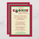 Eye-catching and stylish invitation great to host a cookie swap party. The words are done in typical Christmas colours and different patterns for a modern look. The first "O" in cookie doubles as a holiday ornament. Fun, colourful and chic card ideal to host an event in style. The cute wording is a rhyming poem.