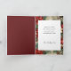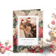 Elegant watercolor style floral pattern featuring assorted Christmas botanicals in white, burgandy red and green, with opaque bordered photo template. Inside features editable text fields.