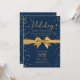 Elegant Holiday Open House Gold Bow Navy Invitation