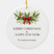Elegant Holly & Red Bow Christmas - Ceramic Ornament