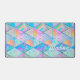 Elegant hologram girly colourful geometric desk mat. To make it extra special, it is also monogrammed and personalised with name or initials or any text you like, click the "customise further" link and use the design tool to modify the design if you like.