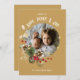 Brilliant red Christmas holly and greenery wreath with festive gold lights surround your favourite photo against a gold background, the perfect card to wish your family and friends Hope, Peace and Joy for this wonder-filled holiday season