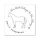 Elegant Script library book stamp featuring a lovely silhouette of a horse with a custom text curving around it: ´´this book belongs to the library of´´ in modern script handwriting and your custom name in simple typography. Easy to customise via the ´´Personalise´´ button. Perfect book embosser for those who love horses!