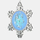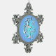 Beautiful ornament for seasonal or everyday decoration, white horse head silhouette artwork with shadow, gradient blue glow background print. Happy blessings from Happy Wishing Well dot com.