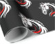 The design features a seamless pattern of horse heads rendered in white, with intricate detailing that captures the elegance and grace of the animal. Each horse head is accentuated with bold red lines that add depth and dynamism to the design. The black background provides a striking contrast, enhancing the visual appeal of the white and red elements. The overall effect is one of sophistication and style, perfect for adding a touch of elegance to any gift-giving occasion.