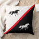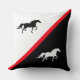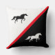 Elegant horse silhouettes on black and white pillow. A diagonal red stripe between black and white colours for a touch of elegance.