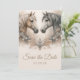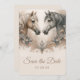 For couples who enjoy horses, this wedding save the date card features two horses in decorative display. Save the Date headline on the front. Your desired details are on the back. Pastel and elegant colours. Use the template to change the text to suit your needs.
