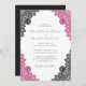 Elegant Hot Pink and Black Floral Lace Wedding Invitation