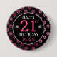 Elegant Hot Pink Glitter & Black Flowers Birthday 7.5 Cm Round Badge