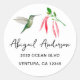 Elegant sticker featuring a female ruby-throated Hummingbird and a flower. The font style, font size and colour can be changed. Add a personal touch to envelopes, packages, and letters. The design can also be transferred to other products. The hummingbird image was taken from original artwork by Christiane Dobbins.