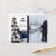 A beautiful modern Christmas tree all dressed in soft coloured hydrangeas with a snowy mountain behind it. It says 'Merry Christmas'. Add your picture and customise as desired.