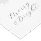 Ice blue snowflake "Merry & Bright" table runner with elegant calligraphy. Detailed icy blue snowflake design. The perfrect table runner to dress your table through the winter season from Christmas to New Year. Designed to match our Ice Blue & Silver Snowflake Christmas Collection.