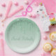 Elegant Ice Green Glitter Script Sparkle Modern Paper Plate