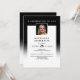 This elegant celebration of life invitation features a refined black and white gradient design, creating a timeless and sophisticated tribute. The front showcases a centred portrait with bold serif typography, setting a tone of remembrance and grace. The structured layout presents the event details with clarity, using classic typefaces that enhance the invitation’s dignified aesthetic. The back continues the cohesive design with a larger framed photo, serving as a heartfelt tribute that friends and family can display as a memorial card. The monochrome gradient adds depth and serenity, making this invitation a meaningful way to honour and celebrate a beautiful life. Available as printed cards or an instant digital download.
