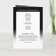 This elegant folded in loving memory funeral program features a timeless black and white gradient design, creating a sophisticated and heartfelt tribute. The front cover showcases a centred portrait framed by classic serif typography, honouring the loved one's name and life dates with dignity. The inner pages present a structured order of service, including welcome remarks, readings, and a space for a personalised obituary, or any text of your choice. The back cover features acknowledgements and a thank you message, or any text you choose. The refined layout ensures a meaningful keepsake, making this program a beautiful way to celebrate a cherished life and provide comfort to attendees.