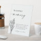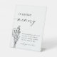 It is sturdy than I expected. Was worried about the material being flimsy but it is not. It is printed on some sort of plastic material. It should serve well at our wedding as long as wind isn’t too bad. Otherwise we will put some paper weights behind it and should be fine.