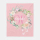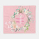 An elegant pretty pink initial monogram fleece blanket, featuring a beautiful white script name with a complimenting pink surname initial framed by a delicate watercolour floral rose garland on a peach pink background. Personalise to create a special keepsake gift to treasure! Designed by Thisisnotme©