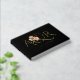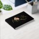 Elegant ampersand and greenery with peach rose flowers gold foil black floral wedding guest book. This modern design includes an elegant ampersand and the couple's initials in gold foil along with a branch and roses in peach and coral on black background. There is a gold thin border around it. The back includes the same thin border and the branch with the roses.