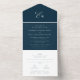 Elegant initials simple navy blue wedding all in one invitation