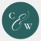 Elegant initials simple teal fall wedding classic round sticker