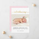 Introducing your new baby, featuring elegant display text that says "Introducing" in hand lettering and calligraphy elegant style font. The baby picture is horizontal or landscape orientation. The other side is pink with white polka dots, suitable for baby girls. Beautiful and elegant baby announcement.