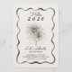 "Elegant invitation card for a 2026 New Year's celebration. Features a decorative wavy border and a central fireworks graphic, with text inviting guests to a celebration of new beginnings in Austin, Texas. Contact details are included at the bottom. The tone is festive and welcoming."