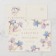 This elegant save the date postcard is perfect for spring and summer weddings. This design features a ring of watercolor irises in shades of lilac and periwinkle blue. Subtle touches of gold add a glistening, magical element.