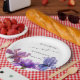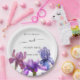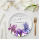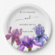 Introducing our watercolor iris flower paper plate for wedding , engagement or anniversary parties , featuring a purple colour. The delicate black calligraphy adds a touch of sophistication to this elegant paper plate, making it an ideal choice for a modern wedding celebration.