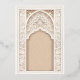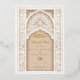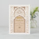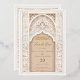 Begin the journey to your special day with this exquisite Save the Date invitation, capturing the essence of Islamic architectural beauty. A magnificent archway, accented by elaborate scrollwork and a classic calligraphy emblem, creates a majestic focal point, while chevron columns frame the design in subtle tones of cream and taupe. Crafted in a colour palette that ranges from sand to ivory, this card reflects a refined aesthetic. The textured paper adds depth, hinting at the luxurious event to come. Send a first glimpse of your wedding that is as memorable and timeless as the day itself.