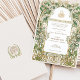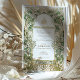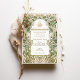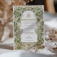 This exquisite wedding invitation suite marries traditional Islamic artistry with a modern touch. The front of the invitation features an intricate, floral Art Nouveau design, dominated by shades of sage green, olive, cream, and accented with gold foil elements that give it a luxurious feel. The back reveals a minimalist aesthetic with a subtle cream background, showcasing a monogram in sage green, olive, and a hint of mustard yellow. Inspired by the timeless beauty of nature and the sophistication of Islamic calligraphy, this invitation is perfect for couples looking to honour their heritage while celebrating their union in style.
