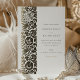 This beautifully crafted wedding invitation features a refined beige and ivory colour palette with intricate floral motifs and elegant Arabic calligraphy. The front of the card is adorned with a delicate floral border in soft beige, providing a classic and sophisticated frame for the couple's names and wedding details. The back of the invitation continues the floral theme, showcasing a detailed pattern that adds a touch of timeless elegance. Ideal for couples seeking a wedding invitation that combines traditional artistry with modern design, this card is perfect for a formal wedding celebration.