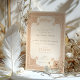 This sophisticated wedding invitation is a true testament to elegance with its ornate Islamic-inspired artwork. Featuring a rich palette of cream, beige, and sepia tones, it exudes a sense of timeless grace and cultural beauty. The front and back of the invitation showcase a detailed, symmetrical mandala pattern, intricately designed with elements that suggest a blend of classic Islamic art and modern finesse. The decorative border frames the content gracefully, with each curl and swirl meticulously crafted to complement the central motif. The use of subtle colour variations from sand to tan, oatmeal to taupe, and hints of antique gold, create a luxurious and warm aesthetic perfect for a traditional yet stylish matrimonial event. This invitation is not just a herald of a special day, but also a keepsake that will be treasured for years to come.