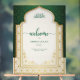 Elegant Islamic Wedding Welcome Sign – Personalised Nikkah Acrylic Décor with Emerald Green Arch & Gold Motifs.