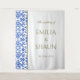 This Elegant Italian white and blue wedding backdrop is great way to enhance your wedding decor, and also provides the perfect photo opportunity for guests to take memorable snaps of your special day. Inspired by vintage Sicilian patterns, this elegant design was hand-drawn and is therefore exclusive to our store, allowing you to brand your wedding in a sophisticated and classy manner. For items matching this timeless, Mediterranean aesthetic, see our full collection. This tapestry is fully customisable, enabling you to edit in your personal details. To customise, simply click on "Personalise this template" and get started.