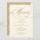 Elegant and formal wedding dinner menu cards feature champagne gold calligraphy script and a coordinating damask pattern on the back of the card. Ivory background colour.