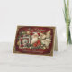 This Christmas card has a vintage Victorian style, featuring an elegant collage of classic holiday elements. The design includes richly detailed illustrations of Santa Claus, angels, Victorian-era women, and festive decorations like poinsettias, pinecones, and ornaments. The color palette is dominated by deep reds, ivory, gold, and soft browns, creating a luxurious and nostalgic feel. Each element is framed in ornate, gilded borders with a touch of sparkle, enhancing the antique and opulent appearance.